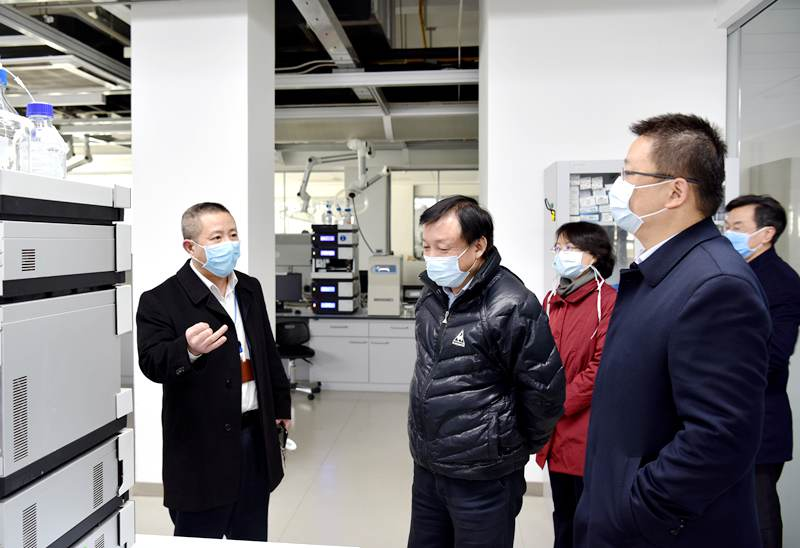 2月18日下午,國家中醫藥管理局政策法規與監督司司長余海洋、科技司副司長周杰蒞臨勁牌公司,調研新冠肺炎預防與診療中藥配方顆粒生產情況。湖北省中醫藥管理局副局長王漢祥、黃石市市長吳錦、黃石市委常委、開發區鐵山區書記吳之凌、黃石市疫情防控指揮部醫療組組長、副市長李麗等領導陪同調研。公司董事長、總裁吳少勛,公司副總裁、勁牌持正堂藥業總經理李清安熱情接待。